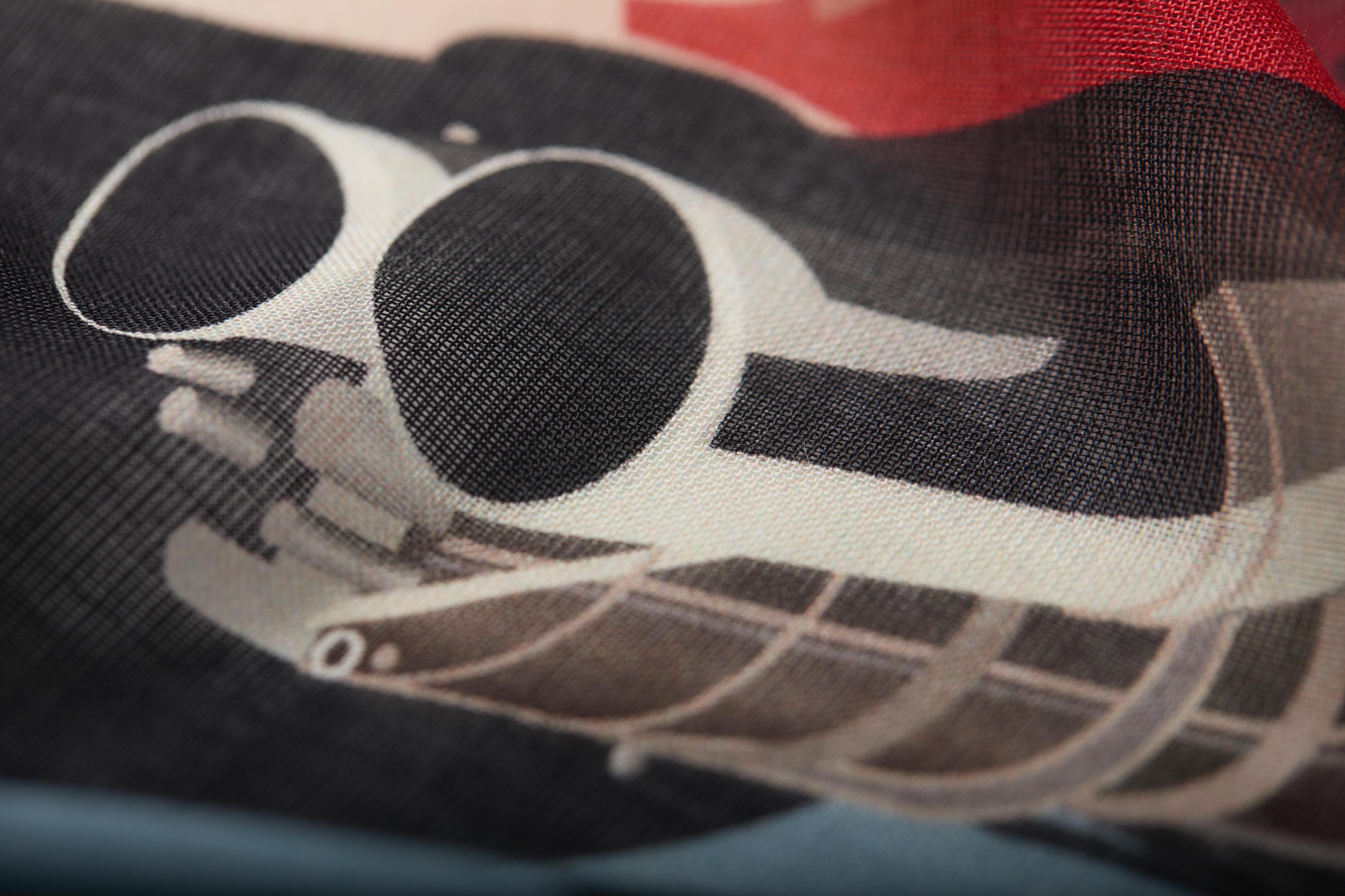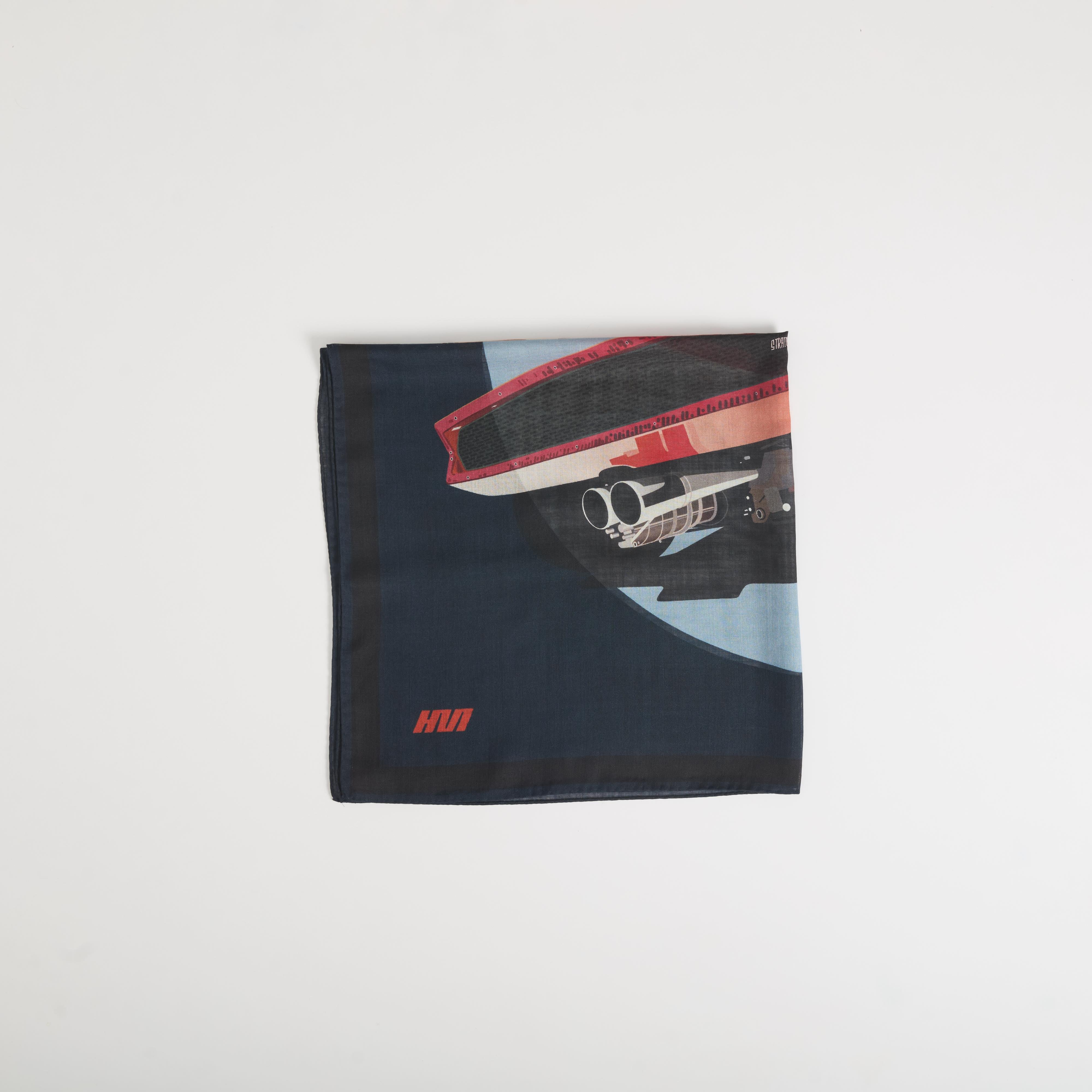 This Foulard features the mighty Lancia Stratos HF Zero! This iconic concept car, designed by Marcello Gandini is a groundbreaking design, both futuristic and radical, reflecting the bold vision of automotive innovation in the 1970s.