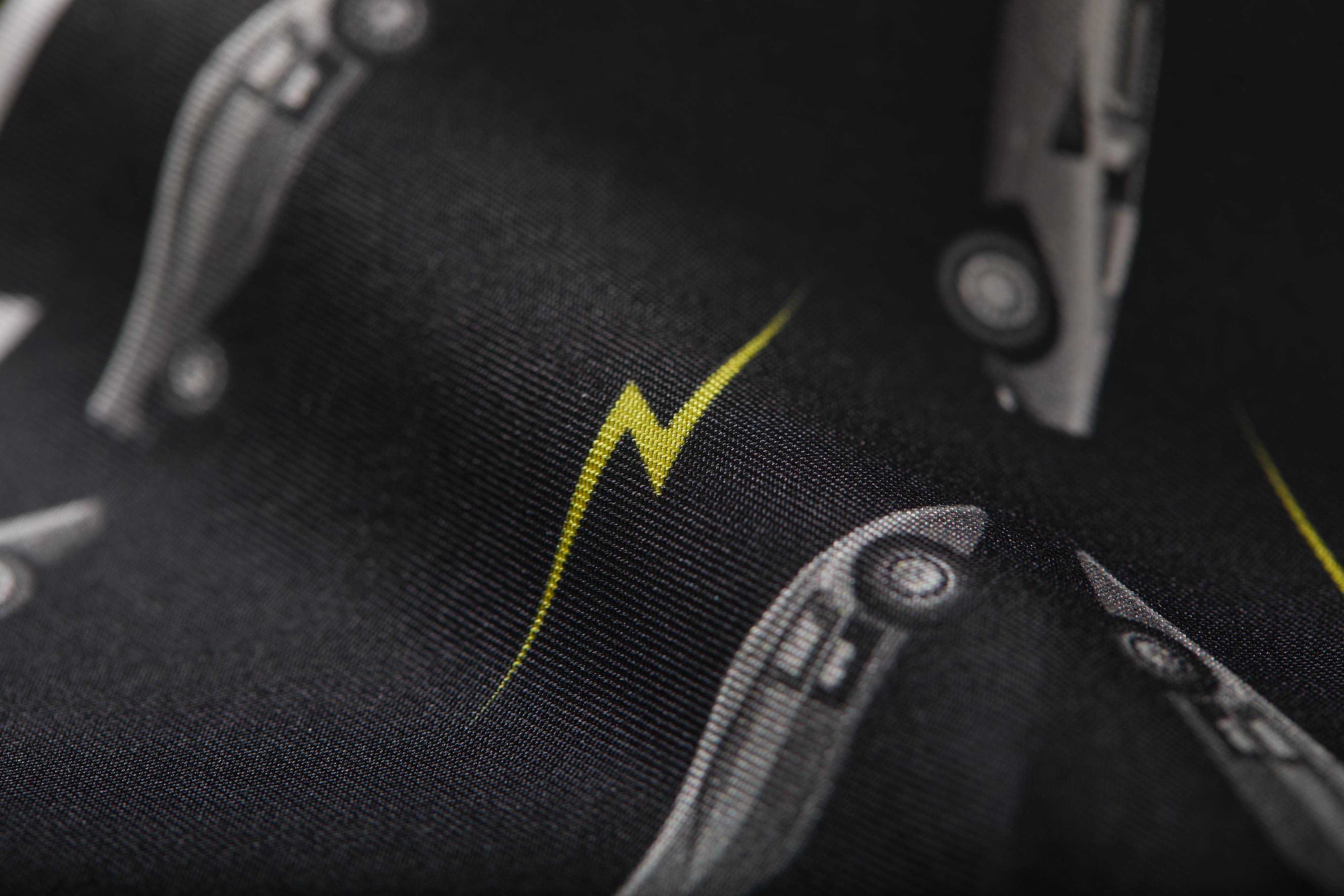 This silk pochette features the most iconic designs by the Master Marcello Gandini.